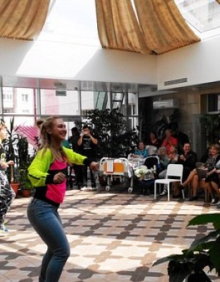 Сегодня 12 мая в зимнем саду хосписа звучали зажигательные мелодии. Для пациентов танцевально -спортивную программу показали представители нового направления в фитнесе - ZUNBA.